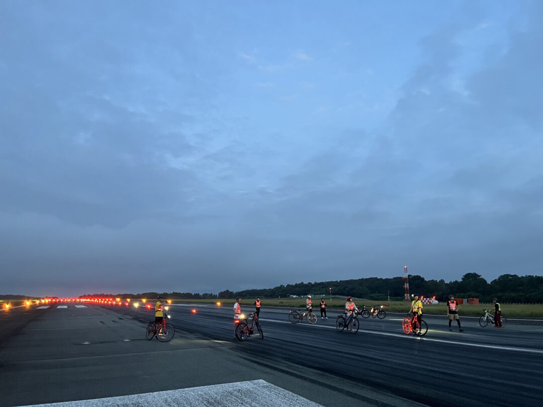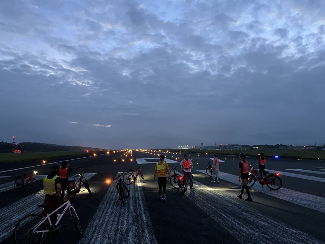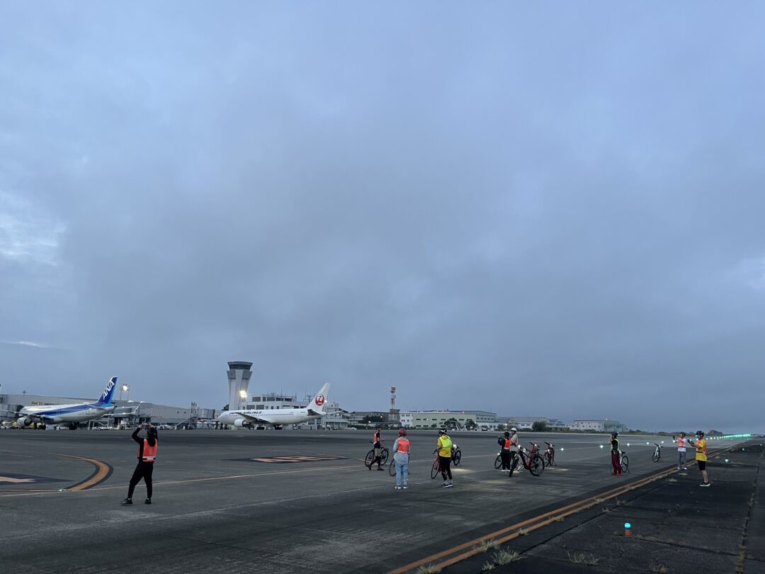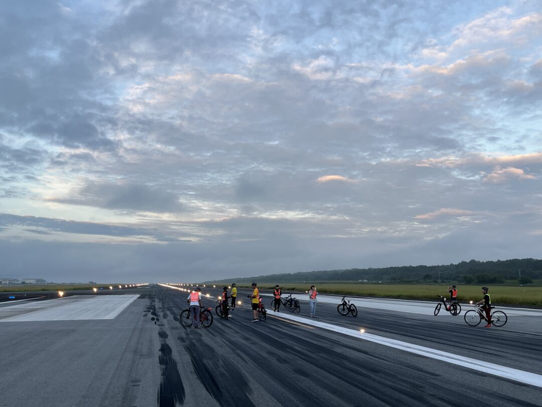 普段は決して足を踏み入れることのできない、阿蘇くまもと空港のメイン滑走路。巨大な旅客機が離着陸するこの特別な場所を、今回も特別に自転車(e-Bike)で走行させていただきました!